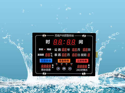 无线户内预警终端丨产品概述本产品是一款针对暴雨、山洪、泥石流等可能发生自然灾害的地区所研发的入户型报警器,具有外观美观大方,功能实用,免维护等优点。可以实时监测雨量及上游水位,并通过多种方式预警以保障下游居民人身及财产安全。产品采用与家庭日常用品相结合的亲民形式,具有公历、农历、时间、星期、温度等居民